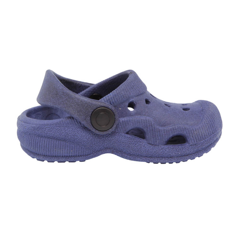 Babuche Dok Menino Jump Azul, confeccionada em material sintético. Apresenta perfuros na região superior, solado anatômico e emborrachado. Fechamento por tira. Todos os calçados da marca possuem solado emborrachado, protegendo os pés de impactos e de possíveis quedas e escorregões.